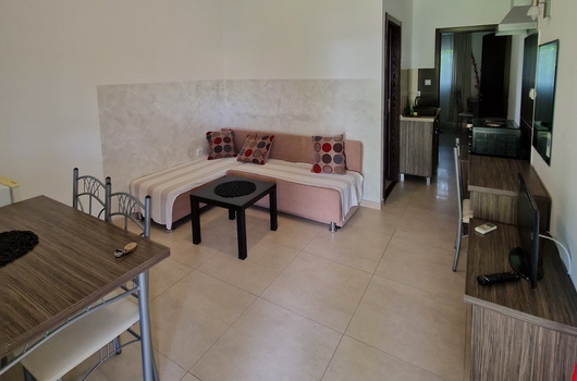 Veliki apartman 60 kvadrata sa dve zasebne sobe, dnevnim boravkom, kuhinjom i velikim kupatilom sa hidromasažnom kadom.